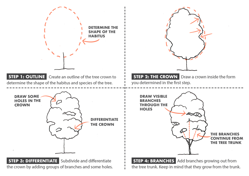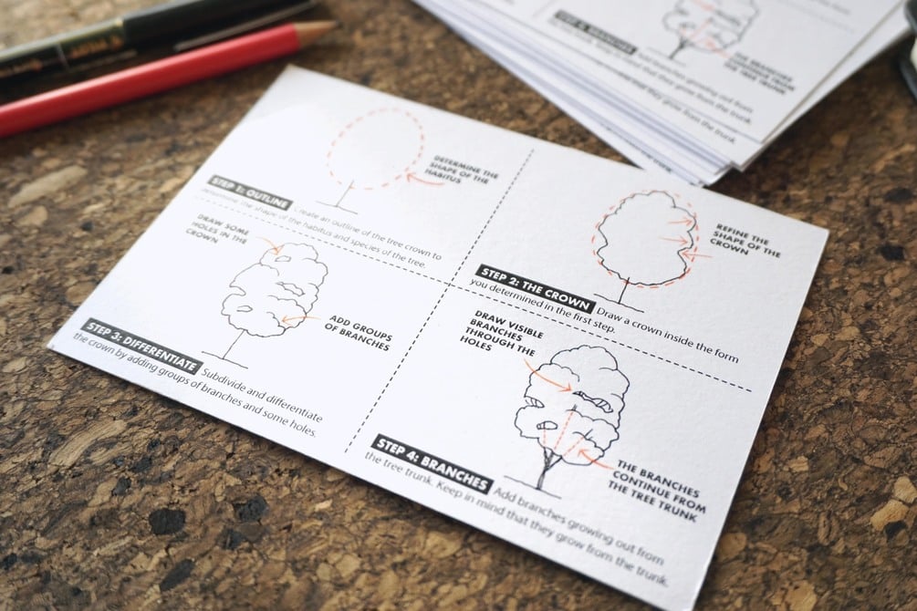 You don't have the time to browse the internet every time for examples on how to draw a tree? Just tuck a Cardscapescard in your sketchbook and you're good to go!